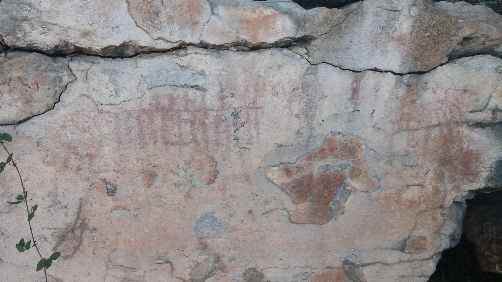 Enlazamos de nuevo un tramo de pista para llegar en poco tiempo al panel de pinturas rupestres a la vera del camino. Algo más abajo se encuentra la majada de Braguilla Cimera, antigua y recuperada majada tradicional de pastores.